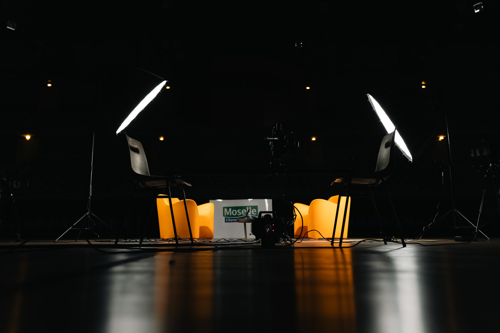 Installation du set, gestion technique, interview et direction de l’échange.